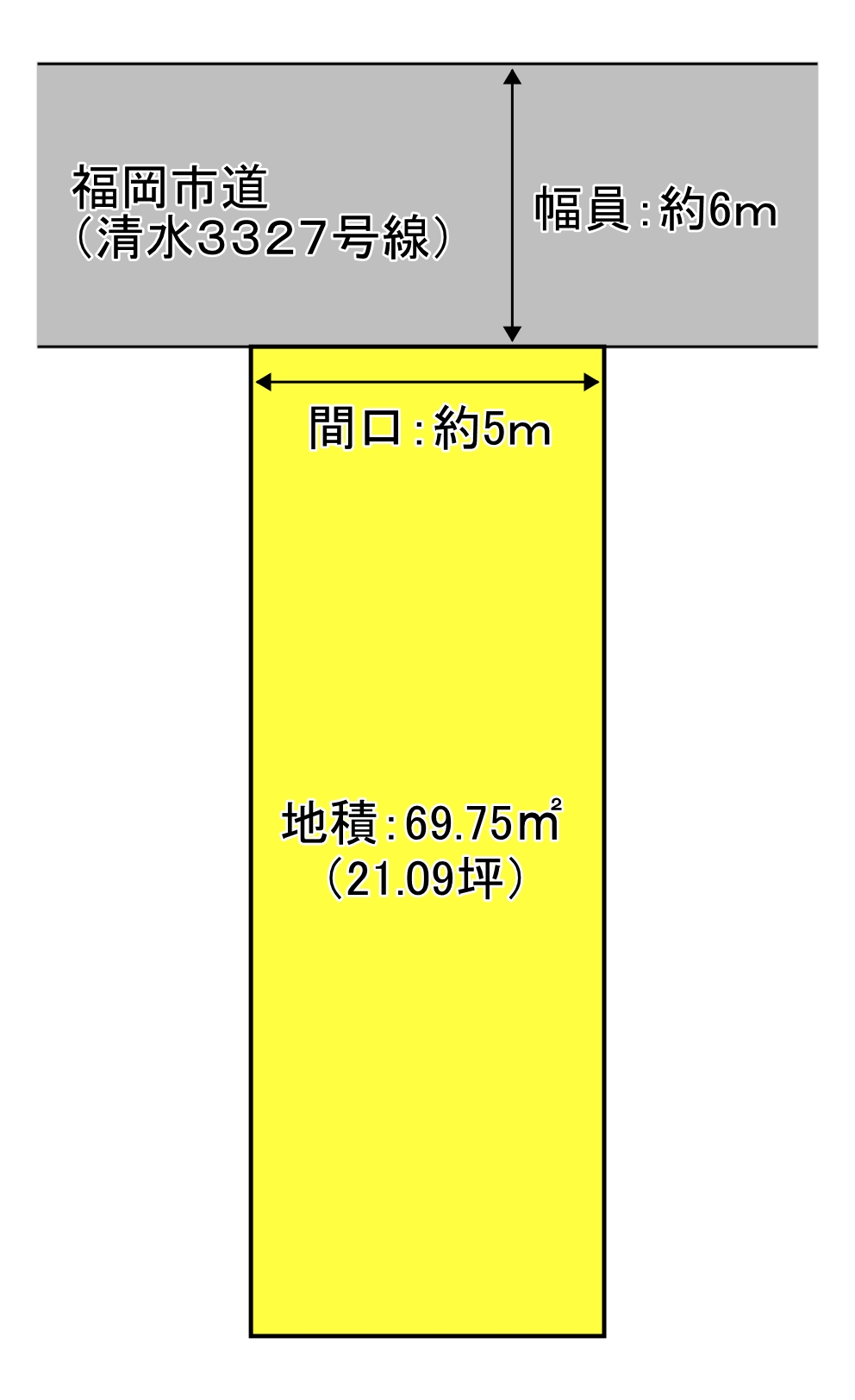 福岡市道・北西向き・幅員:約6m・接道:5m |